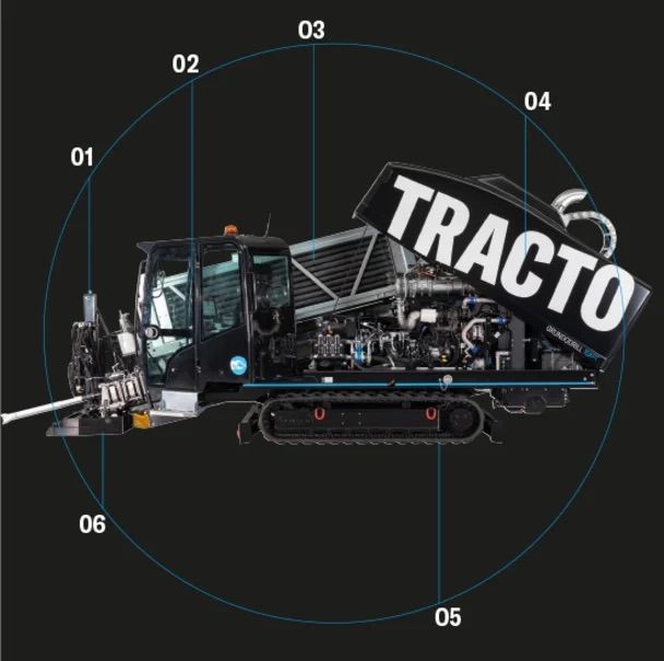 La 15XP, con una fuerza de empuje y tiro de 140 kN y varillas de perforación TD 61, es ideal para la instalación de tuberías hasta DN 400 en longitudes de hasta 350 m.